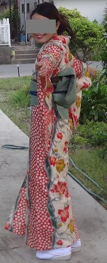 親戚からいただいた一重(夏用)の着物を着る。ばっちり!!嬉しいなぁ。